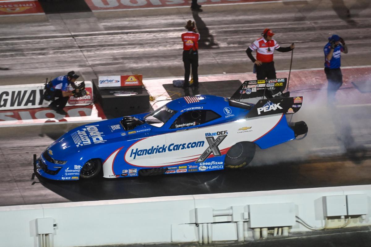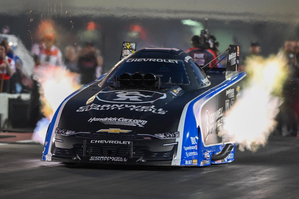 CONCORD, N.C. (April 24, 2026) – Jordan Vandergriff and the Cornwell Tools Chevrolet SS Funny Car team led John Force Racing’s first-day qualifying efforts for the NHRA 4-Wide Nationals at zMax Dragway but all four teams’ solid runs Friday night positioned them for success in Saturday’s final two qualifying sessions and Sunday’s first round of eliminations. Vandergriff ran 3.899 seconds at 328.70 mph for the second-quickest Funny Car run of the day. Alexis DeJoria and the Bandero Café Chevrolet SS Funny Car team sit fifth with their run of 3.932 seconds at 331.20 mph while Jack Beckman and the HendrickCars.com Chevrolet SS Funny Car team are sixth with their run of 3.933 seconds at 314.97 mph. Josh Hart and the HendrickCars.com Top Fuel team established the fourth-quickest run of their class with a Friday evening run of 3.733 seconds at 324.59 mph. Saturday’s qualifying sessions are scheduled for 12:30 and 3 p.m. ET. Sunday eliminations are slated for 12 p.m. ET. Quote from Jordan Vandergriff, Cornwell Tools Chevrolet SS Funny Car:“This was my first night session run in a Funny Car and it’s a lot different. The header flames make it a lot brighter, which kind of narrows your vision but it’s really cool driving these things at night. It’s been a great weekend so far for the Cornwell Tools team here in Charlotte.” Quote from Alexis DeJoria, Bandero Café Chevrolet SS Funny Car:“That was a great run. I’m going to sleep a lot better tonight knowing that we were that good … nice and straight. That’s what teammates are for. I’m happy to be a part of this John Force Racing team and really stoked for Bandero.” Quote from Josh Hart, HendrickCars.com Top Fuel Dragster:“We wanted a little bit more but I can’t put into words how proud I am to be flying the HendrickCars.com flag this weekend. I got to meet Rick Hendrick for the first time and Kyle Larson was hanging out with us, too, so lots of cool first-time experiences. The car looks amazing. The fans here are awesome so It’s always great to be in Charlotte.” Quote from Jack Beckman, HendrickCars.com Chevrolet SS Funny Car: “We’re tearing down the engine to figure out why the PEAK Chevy slowed right at the end of the run and I’m sure we’ll find whatever the smoking gun was. There was a mechanical issue where the car shut off about 150 feet before the finish line because it was going to run a little bit quicker than that. The good news is, even with that issue, we’re still a top-half-of-the-ladder car and we still collected good data. Saturday would normally be a ‘get race day data” day but we have the Mission Foods #2Fast2Tasty Challenge and we’d really like to win as soon as possible … and Saturday sounds good.”