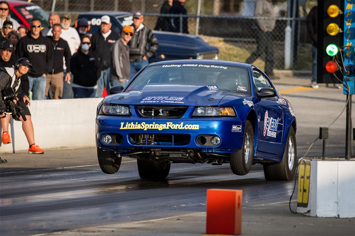 Another top qualifier and another win came from John Leslie Jr. in Richmond Gear Factory Stock, who clicked off a 10.12 to top the qualifying sheets. Leslie Jr. met Justin Fogelsonger in the final round of competition, took the starting line advantage and then took the trip to the Aerospace Components Winners Circle with a 10.15-to-10.17 victory. Sporting a fresh set of RC Components wheels, Exedy Racing Clutch Modular Muscle competitor Gary Parker won four elimination rounds to meet Jason Henson in the finals. Once there, Parker was quick to the tree and quick to the win light. The ARP Open Comp class is full of tough competitors and anyone can win at any time. At Beech Bend Raceway, the final round came down to Greg Cole and Chad Scholten. Both drivers did their jobs well off the line in the battle of Fox-Body Mustangs, but it was Cole who was victorious. Dave Cole grabbed the top qualifying spot in Detroit Locker Truck & Lightning competition with a 0.002 reaction time, and he continued to be on the winning side of the elimination rounds until the finals, where Fred Wade got the better of him from the start to the finish to take the win. Many NMRA racers choose to tow their cars to the track for various reasons, but ROUSH Performance Super Stang racer Kevin McKenna has proven time and again that he can drive to the track, no matter what state it’s in, and blast to competitive, low 10-second runs, and then drive it home. The Indiana resident drove to Kentucky for the final NMRA event of the season and drove to the win after defeating Pete Espeut in the final round of competition. Fastest Street Car Magazine Ford Muscle brings a wide variety of vehicles to the class, and Clyde Dunphy’s 1972 Mustang Mach 1 is one of the coolest rides to win a round. Dunphy did far more than that at Beech Bend Raceway Park, as he defeated Llyod Mikeska in the final round of competition and celebrated in the Aerospace Components Winners Circle. The Mickey Thompson Cobra/Terminator vs. GT500 Shootout class continues to be a favorite addition to the NMRA season opening and ending races, with racers running regularly in the 7s. Ryan Aycock was the man to beat, as he posted the quickest time in qualifying with a staggering 7.56. He would make it to the finals where he met Dwayne Hickman, who was doing well with the new supercharged combination in his Shelby GT500. Hickman ran the slower of the two times with a 7.75 to Aycock’s 7.68, but he grabbed a .223-second starting line advantage that allowed him to take the holeshot win. Many competitors in the Hellion Turbo Battle often compete in other classes during the NMRA races that the special class is held, and Donato Sierchio was entered in both Turbo Battle as well as the King of the Street competition with his 7-second, registered for the street Mustang. Sierchio qualified on top of the Hellion Turbo class with a 7.31, and took the first of two wins at this event after defeating James McCord, 7.28 to 7.44 in the heads-up eliminator. QA1 True Street always turns out in droves at the NMRA finals in Bowling Green, Kentucky, and this year was no exception with over 140 cars teching in. Chock full of 7- and 8-second machines, the majority of ultra quick cars bowed out early, leaving Jason Wagoner to take the overall win with an 8.964 average. Dan Saitz in his 2011 Mustang GT took runner up honors with a 9.019 average while Daniel Rosner rocketed to the 9-second win. Bob Myers banged the gears in his Mercury Capri to the 10-second win, Tim Apple took the 11-second award with an 11.043 average, and Gary Johnson went 12.005 for the 12-second prize. Leading the 13-second charge was Clint Plummer with a 13.015 average, Richard Shannon Doyle collected a 14.009 average for the 14-second win, and Brian Flanagan narrowly beat out multi-time 15-second winner Belinda Moore with a 15.026 to her 15.093 average. The exclusive GForce Performance Engineering King of the Street brings together the overall winners from each True Street competition, along with the winner of the Spring Break Shootout and the runner up from True Street at the finals for a heads-up brawl to find out who truly is the King of the Street. The final round came down to Spring Break Shootout winner Donato Sierchio and St. Louis True Street winner Randy Thomas, with Sierchio rocketing to the win in his turbocharged Fox-Body Mustang. TREMEC Stick Shift Shootout pits the eight quickest manually shifted cars from True Street against each other in their own speed contest. In the final round, Tim Casto defeated 2019 Stick Shift Shootout winner Mike Niehaus for the win and the trip to the Aerospace Components Winners Circle. The Capri Club of North America has once again found a home with the NMRA, and while the Ford Capri, of which the club is based on, may not be a Mustang, the club members’ enthusiasm is just as energetic. As part of their attendance, Capri Swarm owners were able to take part in a bracket race, which was settled on Saturday with Chris Rolls taking the win over James Meredith after Meredith turned on the red light at the start. The RacePagesDigital.com Bracket 3 featured racers from True Street as well as local bracket racers. In the final round of competition on Sunday, it was Michael Crass who drilled the tree with a .009 light and then took the win over Danny Towe, who wasn’t far behind with a .019, in the tough final round. Because the Performance Racing Industry show, where the champions ceremony is annually held, had to be canceled for this year, NMRA champions were honored for all of their accomplishments in the special champion version of the Aerospace Components Winners Circle as the sun began to set on a sensational weekend and season. Please visit www.nmradigital.com and www.racepagesdigital.com, and the series’ social channels, in the days to come for stories and videos that feature the champions. |