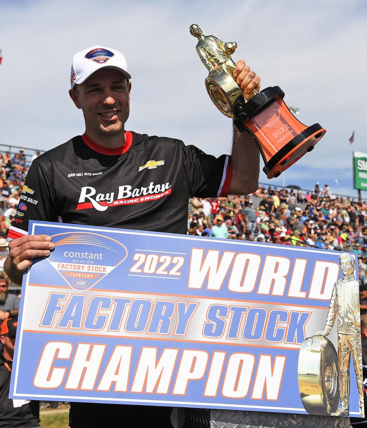 David Barton of Robesonia, Pennsylvania, clinched his second Constant Aviation Factory Stock Showdown championship in the Saw Mill Auto Chevrolet COPO Camaro.