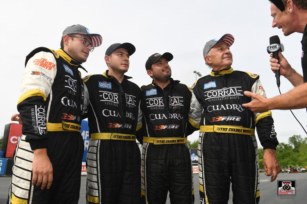 Another highlight for the Cuadra team took place on Saturday during qualifying when all four of the Corral Boots Mustangs, driven by Fernando Cuadra Sr. and his sons, Fernando Cuadra Jr., Cristian Cuadra and David Cuadra, took to the track at the same time for a history-making qualifying quad.