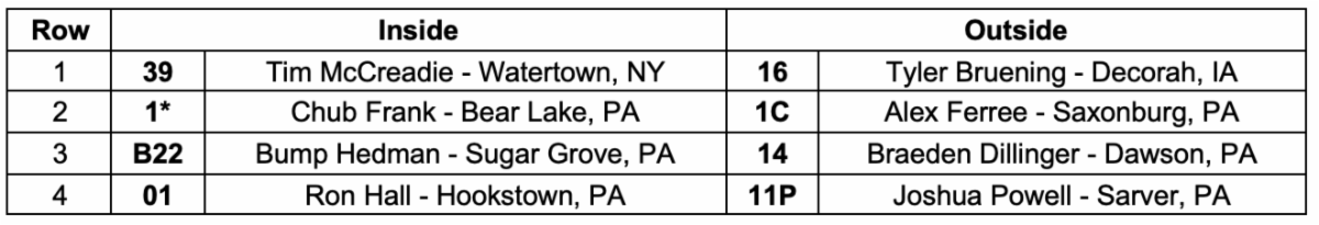 Lucas Oil Heat #5 (10 Laps | Top 3 Transfer) Line-Up