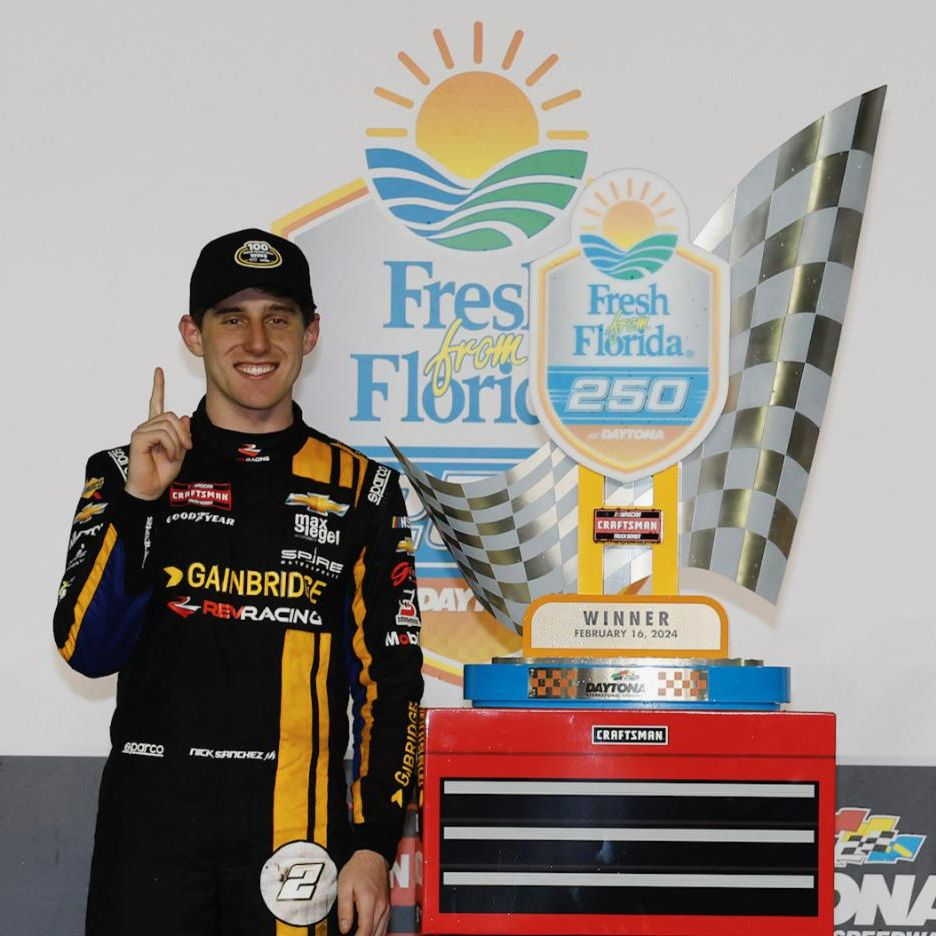 Nick Sanchez claimed the NASCAR Craftsman Truck Series win in the series’ season-opener at Daytona International Speedway – marking his first career victory in the NASCAR national ranks. The 22-year-old Miami, Florida, native participated in the Drive for Diversity Program from 2017 to 2022 – winning the 2022 ARCA Menards Series Championship with Rev Racing before making the jump to the NCTS with the Chevrolet organization. Sanchez’s rookie campaign in the series concluded with an impressive sixth-place finish in the final points standings and the title as the 2023 NCTS Rookie of the Year.