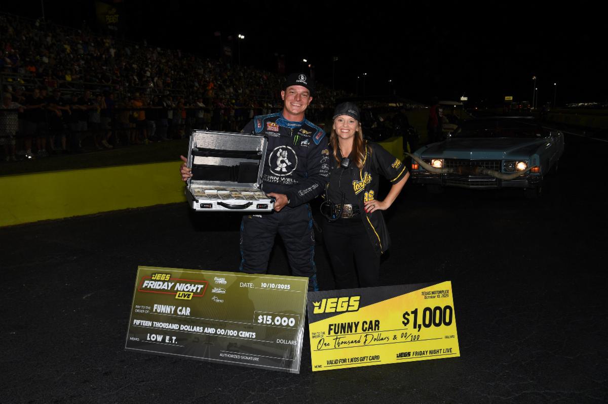 ENNIS, Texas (Oct. 11, 2025) – The Cornwell Tools Chevrolet SS Funny Car was a 12,000-horsepower bucking bronco for 2025 NHRA Funny Car point leader Austin Prock but the 3.876-second ride he took under the lights down the Texas Motorplex drag strip was low elapsed time of Friday’s night qualifying session, making him the provisional No. 1 qualifier for the NHRA Mission Foods NHRA Texas Fall Nationals. The reigning Funny Car Champion earned his sixth No. 1 qualifier of the season and the $15,000 Battle for the Saddle bonus with the run that clicked the lights at 336.07 mph. His John Force Racing Funny Car teammate Jack Beckman drove the PEAK Antifreeze and Coolant Chevrolet SS to the No. 3 spot with a Friday night qualifying run of 3.892 seconds at 330.83 mph. Both drivers shut off early in their Q1 runs after spinning the tires. Brittany Force wheeled her Monster Energy Top Fuel Dragster to a sixth-place run of 3.703 seconds, but it was her speed that brought the full grandstands of Texas drag racing fans to their feet. The run of 340.57 mph run was her 11th340-mph run of the 2025 season and the first ever at the Texas Motorplex which is celebrating its 40th season of NHRA competition. The run backed up her Q1 run of 3.874 seconds at 329.79 mph. The final two rounds of qualifying are scheduled for Saturday, Oct. 11, at 12 and 2:30 p.m. CT. Final eliminations are scheduled for 10 a.m. C.T. on Sunday, Oct. 12. Quote from Austin Prock, Cornwell Tools Chevrolet SS Funny Car: “It’s a little nerve-racking on a Friday night, especially when you spun the tires early in the first run, so you’re a little bit gun-shy, don’t really know what the track can hold, and you’ve got to go up there and make a lot of horsepower to run a quick ET. It’s a fine balance, but I have all the faith in my Cornwell Tools team. These guys are very intelligent, very sharp, so you just have to believe in your runbook and try to make smart decisions. They did exactly that and we’re walking home with the $15,000 low qualifier bonus. “The points tightened up with Hagan and Beckman after St. Louis but that’s exactly what NHRA wants. We had a huge lead, 280 points, and they took it all away (for the playoffs) to tighten everyone up to put on a great show for the fans. We’re in the competition business, but we’re also entertainers and we’re definitely making it exciting … whoever wins the most in these last three races. I’m not even counting points at this point. We just have to go out there to try to win the next three races. If we do that, we’ll be back-to-back world champions and that’s got a nice ring to it.” Quotes from Jack Beckman, PEAK Antifreeze and Coolant Chevrolet SS Funny Car: “I think the hallmark of the PEAK team last year, and certainly the first half dozen races this year, is we were top three virtually every qualifying run. A lot of those were far from what we wanted it to run, or perfect runs, which meant we had such a wide tune-up window that even when we missed it, we still ran good. We were trying to run low ET that second session. It didn’t wear the amount of clutch we predicted it would, and when it does that, it slows the entire clutch application down to try to compensate. So, all that does is make the car run a little bit slower. To have that happen and still be the third-quickest car out there makes me feel great. Now, we’re not going to see those conditions again this weekend. Unless you get a cold front or clouds cover the track, that was the hero run so it’s time to move on. Tomorrow, we have a chance for six qualifying points, three each session. And the fact that Austin (Prock) has already put a couple more points on us, that’s a big deal. So, tomorrow we’re running for three points each session.” Quotes from Brittany Force, Monster Energy Top Fuel Dragster: “We’ve run 340 before but we’d never done it here at the Texas Motorplex. This is for the fans; this is for the Meyer family and I’m excited to be here. We had two good runs down the track today so I’m very excited for the Monster Energy team.” TV ScheduleTelevision coverage on Sunday, Oct. 12, includes qualifying action on FS1 from 10 a.m. – noon ET and then eliminations coverage on FOX from 2-4 p.m. ET and 4:30-6:30 p.m. ET. |