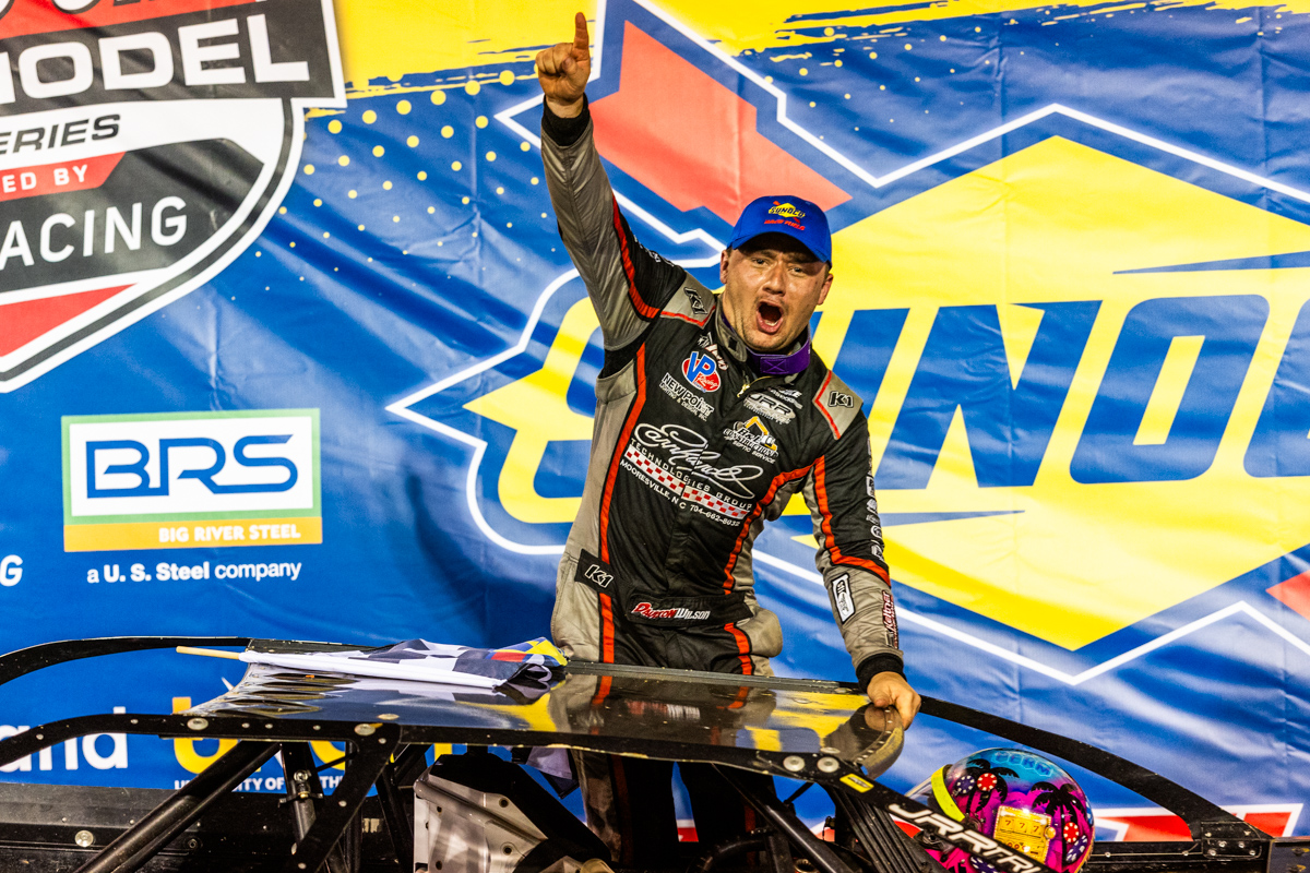 “Honestly, I’m out of breath,” Larson said. “That was a really fast paced 25 laps. The track was really slick, but then against it was super gripped up. It just made it like really technical. Your car was dancing around a lot. I was using both feet quite a bit and steering pretty heavy there, but it was fun. I was trying to watch at least the scoreboard there to see who was in second, and I saw Spencer was still in second. I got stuck behind the 4 (Cameron Martin). He was running a good pace in front of me for a while, and I just figured they were probably closing on me. Thankfully I got by him with a few to go, and I felt like I could rest a little bit easier after that.”